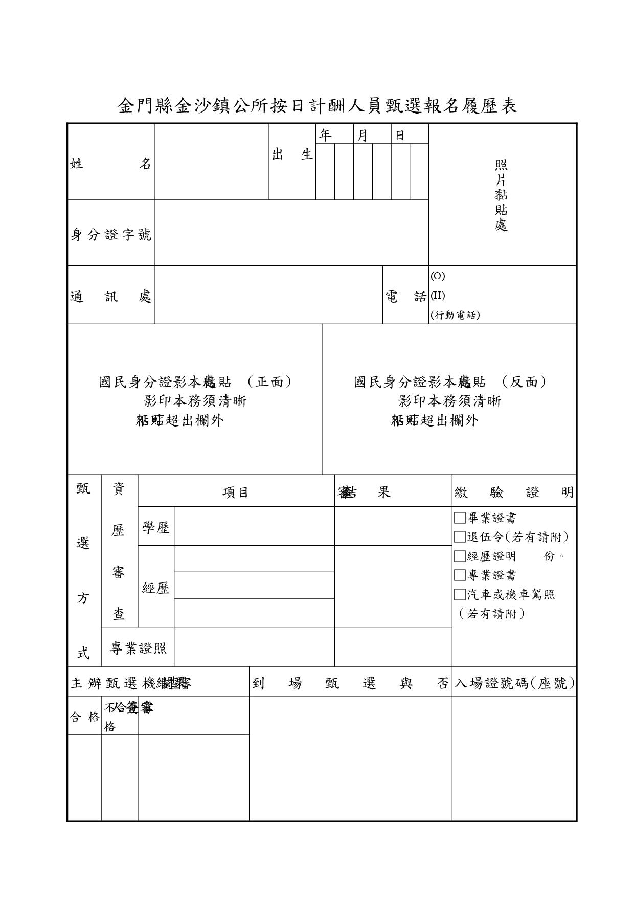 (二)國民身分證影本1份(正反面)(影本貼於報名表)。